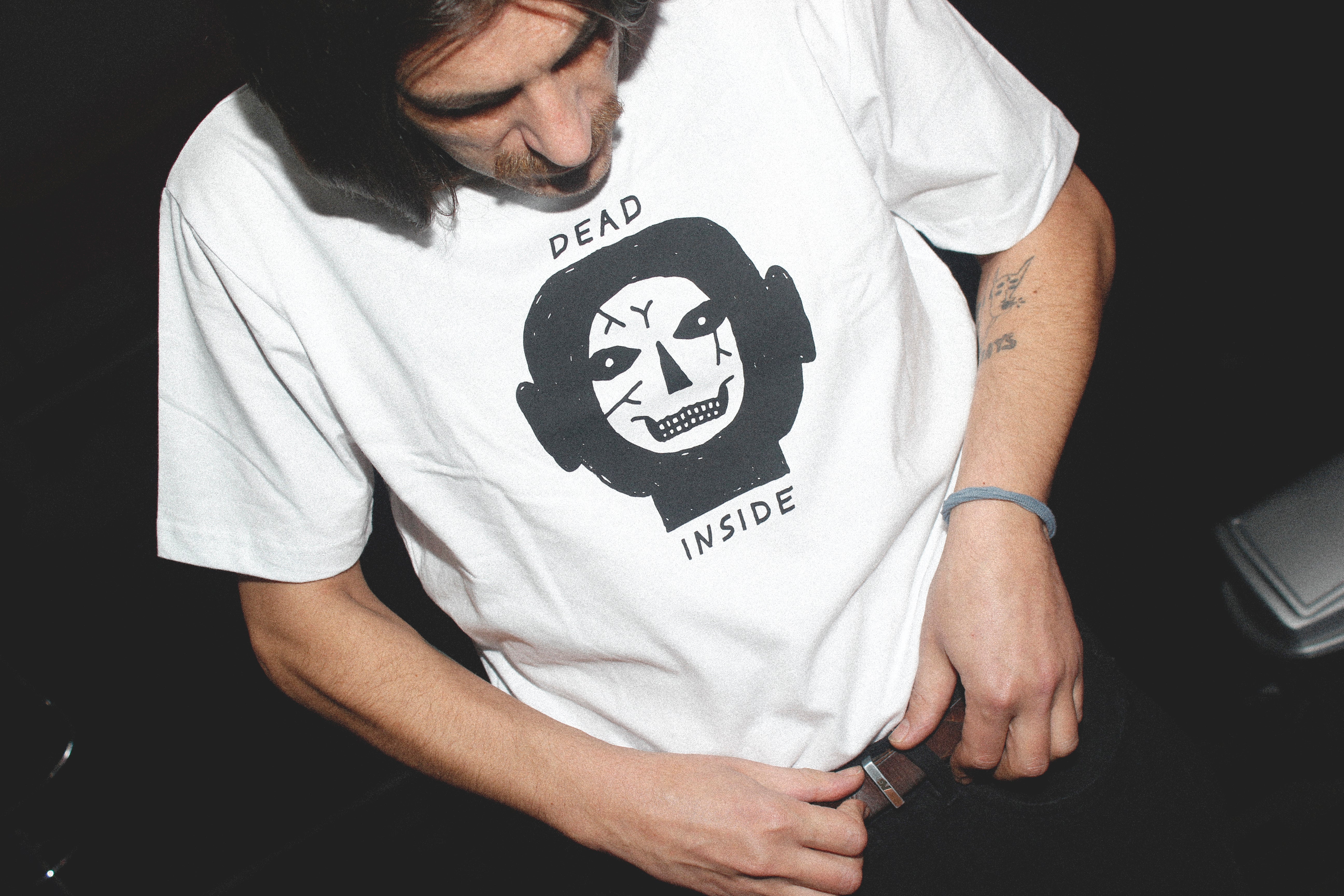 Dead Inside is a heavyweight (220gsm) t-shirt classic unisex fit made from 100% cotton, hand screenprinted with eco-friendly water-based ink. It's sustainably made, vegan, and crafted with fair and safe working conditions in mind.